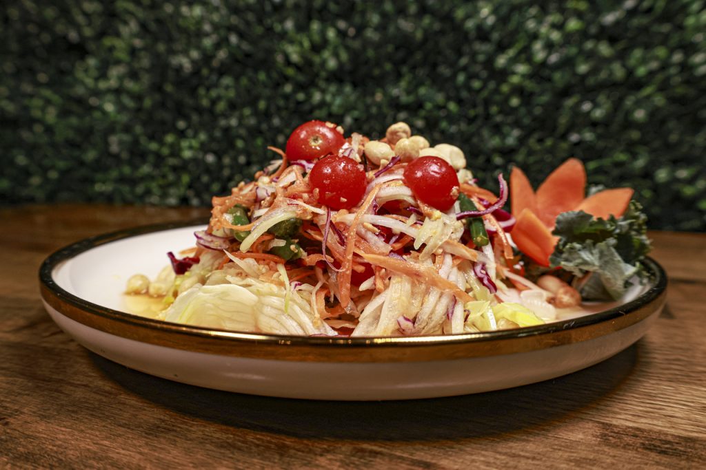 Fresh, shredded papaya with carrots, tomatoes, green beans and peanut in a special Thai spicy sauce.